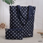 Сумка летняя с косметичкой, отдел на молнии, без подклада, цвет синий/белый