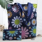 Сумка летняя с косметичкой, отдел на молнии, без подклада, цвет синий