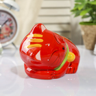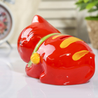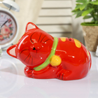 Сувенир кот копилка керамика "Манэки-нэко с рыбкой на подушке" 6,5х7,5х6,3 см