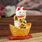 Маятник пластик "Манэки-нэко белый на слитке золота" от солнечной батареи 10х8,5х5,5 см