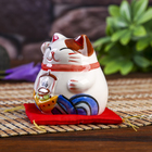 Сувенир кот копилка керамика "Манэки-нэко на подушке" 6,5х7,5х6,3 см