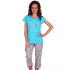 Пижама женская (футболка, бриджи), цвет голубой, размер 54