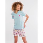 Пижама женская (футболка, шорты), цвет голубой, размер 44 (S)