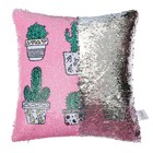 Наволочка декоративная с пайетками "Этель" Кактусы, 40х40 см, велюр, 100% п/э