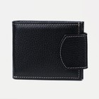 Портмоне мужское на кнопке, 2 отдела, отдел для карт, 1 наружный карман, цвет чёрный