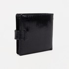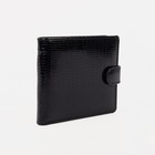 Портмоне на кнопке, 3 отдела, для карт, монет, ящерица, цвет чёрный