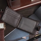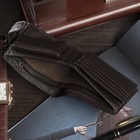 КошелькиПортмоне мужское 3 в 1 для автодокументов и паспорта, 2 отдела, для карт, для монет, цвет коричневый