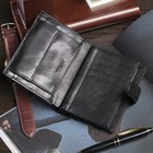 Портмоне мужское, 2 отдела, для карт, для монет, цвет чёрный