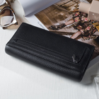 Кошелек женский, 3 отдела, для карт, для монет, 2 отдела на молниях, цвет чёрный