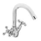 Смесители для раковиныСмеситель для умывальника двуручный Juguni JGN0730 с гибкой подводкой, кран-букса керамика, хром.маховики