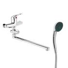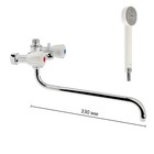 ![]() Смеситель ванно-душевой двуручный Juguni JGN0141 с метал. шлангом, хром.лейкой и маховики, кран-букса резина, L-излив 350 мм