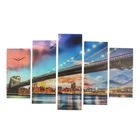Часы настенные, серия: Город, модульные "Светящийся мост", 80х140 см, микс
