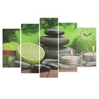 Часы настенные, серия: Кухня, модульные "Лайм, свечи и камень", 80х140 см, микс
