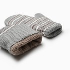 Варежки для мальчика двойные, серый с коричневым, размер 17