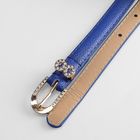 Ремень женский, гладкий, пряжка золото, хомут стразы, ширина - 1,5 см, цвет синий