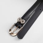 Ремень женский, гладкий, пряжка золото, хомут стразы, ширина - 1,5 см, цвет чёрный