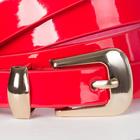Ремень женский, гладкий лак, хомут и пряжка золото, ширина - 1,5 см, цвет красный