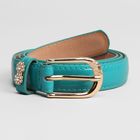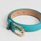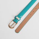 Ремень женский, гладкий, ширина - 2,5 см, пряжка цветы золото, цвет бирюзовый