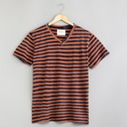Футболка мужская, с V-вырезом, размер 50, полоска, цвет кирпичный