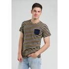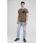 Футболка мужская, круглый вырез, карман, размер 50, полоска, цвет горчичный