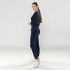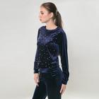 Костюм женский велюровый с бусинами на груди, размер 44-46, цвет синий