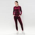 Костюм женский велюровый с бусинами на груди, размер 46-48, цвет бордо