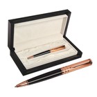 Ручка подарочная, перьевая, в кожзам футляре, чёрная с золотистыми вставками, «Президент»