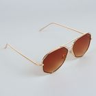 Очки солнцезащитные "Авиаторы", оправа под бронзу, дужки — вставка коричневая, линзы коричневые