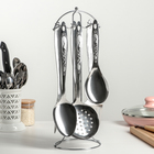 Наборы кухонных принадлежностейНабор кухонный, 7 предметов: половник, поварская ложка, вилка для мяса, шумовка, картофелемялка, венчик, подставка