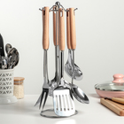 Наборы кухонных принадлежностейНабор 6 предметов: консервный нож, пресс для чеснока, штопор, щипцы для орехов, картофелечистка, подставка