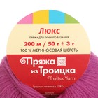 Пряжа "Люкс" 100% мериносовая шерсть 200м/50гр (1643, яркая сирень)