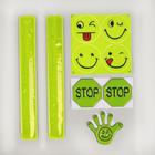 Светоотражающие элементыНабор светоотражающих элементов, 9 шт: браслет, 2 шт, 22 см; Знак «Стоп», 2 шт, d = 5 см; «Ладошка», d = 5 см; «Смайл», d = 5 см