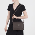 На длинном ремнеСумка женская, отдел с перегородкой на молнии, наружный карман, регулируемый ремень, цвет коричневый