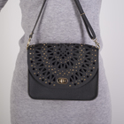 Сумка женская, 2 отдела на магнитах, регулируемый ремень, цвет чёрный/зелёный