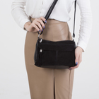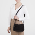 Сумка женская, 2 отдела на молнии, 2 наружных кармана, длинный ремень, цвет чёрный