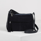 Сумка женская, 2 отдела на молнии, наружный карман, длинный ремень, цвет чёрный