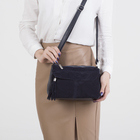 Сумка женская, 2 отдела на молнии, 2 наружных кармана, длинный ремень, цвет синий