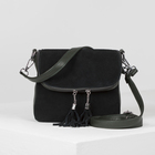 Сумка женская, 2 отдела на молнии, 2 наружных кармана, длинный ремень, цвет зелёный