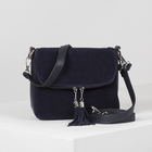 Сумка женская, 2 отдела на молнии, наружный карман, длинный ремень, цвет синий