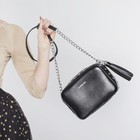 На длинном ремнеСумка женская, отдел с перегородкой, наружный карман, 2 цепи, длинный ремень, цвет голубой перламутровый