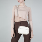 Сумка женская, 3 отдела на молниях, 3 наружных кармана, длинный ремень, цвет бежевый