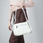 На длинном ремнеСумка женская, отдел с перегородкой на молнии, наружный карман, длинный ремень, цвет белый перламутровый
