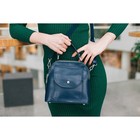 Сумка женская, отдел на 2 молниях, 2 наружных кармана, длинный ремень, цвет синий