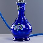 Кальян 67 см, 1 трубка, колба синяя с цветами, шахта с синими вставками , микс