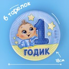 ![]() Набор бумажной посуды "С днем рождения 1 годик", 6 тарелок, 6 стаканов, 6 колпаков, 1 гирлянда, голубой