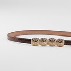 Ремень женский, на гвоздике, ширина 0.8 см, гладкий, пряжка под золото, стразы, цвет бежевый