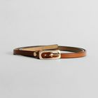 Ремень женский, гладкий, ширина - 1 см, пряжка золото, цвет коричневый