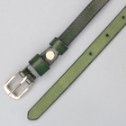 Ремень женский, гладкий, пряжка матовый металл, ширина - 1,2 см, цвет зелёный