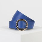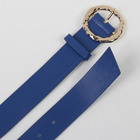 Ремень женский, ширина - 3,5 см, гладкий, пряжка золото, цвет синий