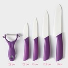 Набор кухонный, 5 предметов: 4 ножа 15/13/10/7,5 см, овощечистка, на подставке, цвет фиолетовый